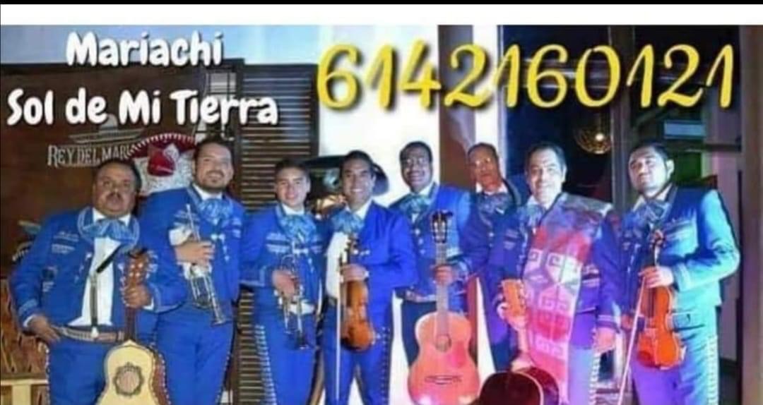 Mariachi sol de mi tierra se pone a sus órdenes para cualquier tipo de eventos, serenatas, aniversario, bodas, XV años, misas, funerales y muchos eventos más. Es una agrupación integrada por 7 elementos totalmente profesionales. Estamos ubicados ciudad chihuahua. Le atiende Lic. Edgar Núñez